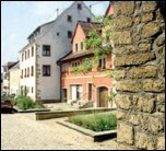 Über eine Bogenbrücke führt die Straße, die sich dann vor dem Tor verengt, so daß nur ein Fahrzeug Platz findet. Das Stadttor, eines der Wahrzeichen, beherbergte das Rat- und Schulhaus dieser Stadt. Nach dem Tor öffnet sich ein großer Platz, hier befindet sich gleichzeitig auch die einzige Straße dieser Anlage. Ein einziges Gebäude ragt aus der Flucht der Häuserzeile hervor - früher der Sitz des Obervogtes der Herrschaft Tengen.