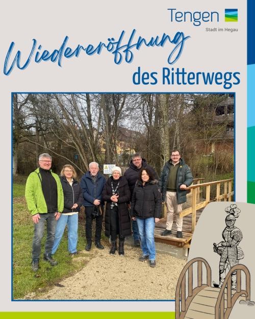 Nach Abschluss der Planungs- und Bauarbeiten wurde der Ritterweg in Tengen am 29. Januar 2026 offiziell wiedereröffnet. Bei winterlicher Witterung nahm Bürgermeister Gök gemeinsam mit den beteiligten Grundstückseigentümern, den Eheleuten Groß sowie den Eheleuten Sailer, den symbolischen Banddurchschnitt vor.