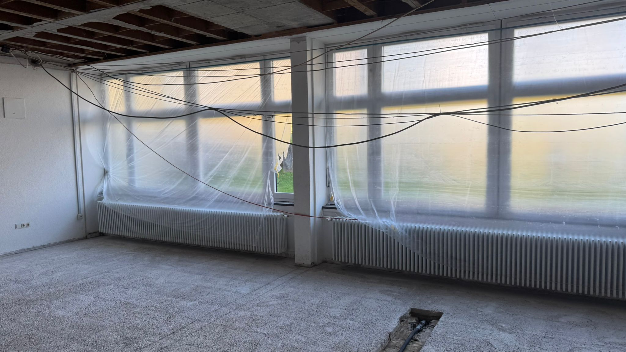 Durch unvorhersehbare Schwierigkeiten, wie z.B. das erschwerte entfernen des alten Bodenbelages, freigelegte Armierungen unter der Bodenblatte auf Grund von defekten Grundleitungen, verzögern sich die Umbauarbeiten der neuen Mensaräume in der Grundschule Tengen. Die Küchenplanung ist jedoch bereits abgeschlossen und die nächsten wichtigen Schritte für eine neue kindgerechte Mensa sind in die Wege geleitet.