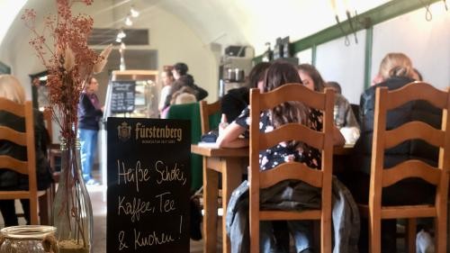 Wo einst eine Cafeteria stand, finden Besuchende des Schlosses heute das Schlosscafé. Ob an den Schlosscafé-Sonntagen, am Feierabendhock oder zu besonderen Kulturveranstaltungen – hier treffen Jung und Alt, Tourist*innen und Einheimische sowie bekannte und neue Gesichter aufeinander. Immer in Begleitung von einer Tasse Kaffee, leckerem meist selbstgebackenem Kuchen, regionalem Eis oder einem erfrischenden Getränk der Wahl. Besonders im Sommer lädt neben dem gastronomischen Angebot auch der Schlossgarten mit Sonnenterrasse zu einer kurzen Pause ein. Die aktuellen Öffnungszeiten können auf schloss-blumenfeld.de nachgelesen werden.