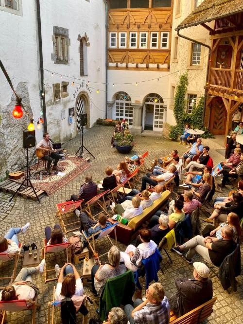 Neben der alten Cafeteria wurde auch der Schlosshof wiederbelebt. Nicht als Café, sondern als Bühne. Kleine und große Künstler*innen brachten das Schloss im Rahmen von Hofkonzerten, Lesungen, Ausstellungen und Kleinkunst-Festen über die letzten Jahre immer wieder zum Leuchten. Auch in diesem Jahr lädt ein buntes Kulturprogramm Menschen aus der Region ein, Kunst und Kultur in und außerhalb der Schlossmauern zu genießen. Wann das Schlosstor für welche Veranstaltung geöffnet wird, verrät die Übersicht auf schloss-blumenfeld.de/veranstaltungen.