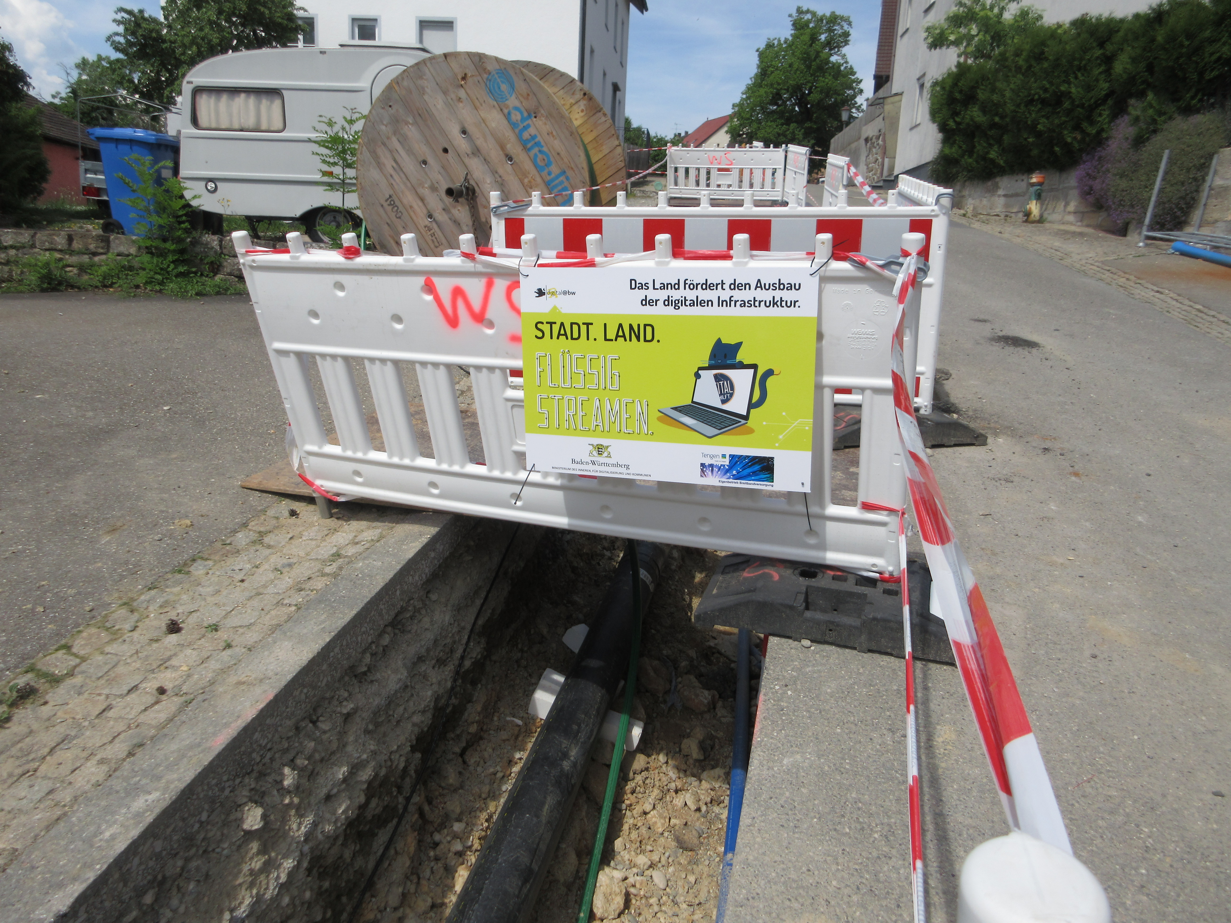 Leerrohre für das Breitband. Diese Maßnahme wird vom Land gefördert.