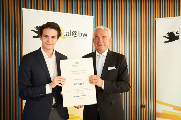 Herrn Bürgermeister Marian Schreier wurde die entsprechende Urkunde von Herrn Thomas Strobel als Vertreter des Landes